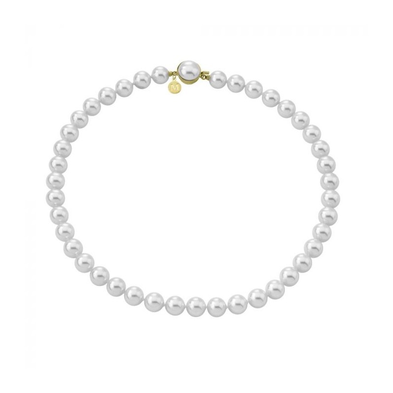 Collar Majorica Lyra 45 cm x 10 mm. Ref. 09874.01.1.021.010.1. Disponible en 3 acabados: Plata con perla blanca o gris, y Plata dorada con perla blanca.